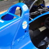 公道を走行するため、もちろんナンバー付き。車両法をクリアするための改造が施されている。地上最低高は90mmが確保されているほか、ヘッドライトの横やボディサイドにはウインカーも追加されている。一般的なラジアルタイヤに換装され保護用のフェンダーを装着。とはいってもコクピットはフォーミュラーマシンそのもので、MOMO製の脱着可能な小径ステアリングイールやレイナード製のトランスミッションはベース車そのままだという。公道仕様のためフォーミュラーマシンと聞いて想像するような爆音はなく、思いのほかエンジン音は控えめだ。