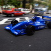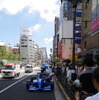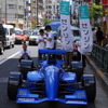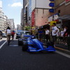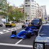 ゼンリンデータコムのナビゲーションサービス「いつもNAVI」のレーシングスーツを身にまとって都内をドライブするのは、オーナーの石川剛さん(三重県在住)。「10数年前に新車として車検を通して以来、名古屋などの一部の都市の公道で走らせたことはあるが、東京は初めて」とのこと。決してボディは大きくないが、一般車に混じって六本木の街をフォーミュラーマシンが走るのは異様な光景で、注目度は抜群。中継地点の東京ミッドタウン前では、昼休みのサラリーマンやOL、観光客が集まり一斉に携帯電話を取り出して写真を撮っていた。