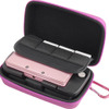 拡張スライドパッドを装着したまま本体を収納できるハードケースです。拡張スライドパッドをしっかりホールドする内部構造になっており、素材には軽量で衝撃に強いEVA素材が採用されています。また、3DS/DS用ゲームカードやSDカードを4枚個別に収納できるカードホルダーを搭載。日運びに便利なカラビナフックが付属しています。カラーはブラック、ブルー、ピンクの3色です。
