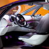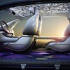 室内では、フローティングタイプの独立4シーターが目を引く。天井にはシェード付きのガラスルーフを装備するなど、プレミアムな仕上げ。ルノーによると、プライベートジェットを意識したという。