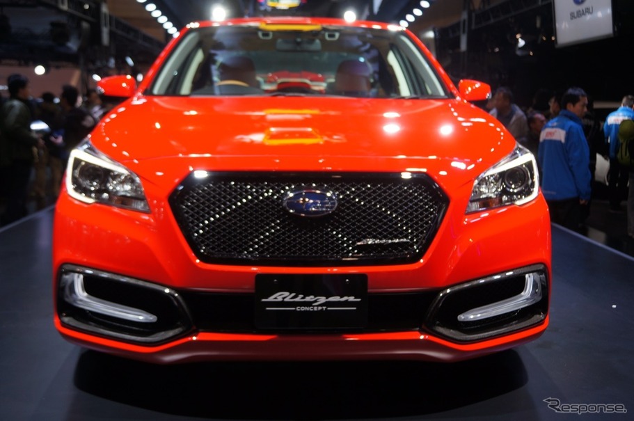 9日に開幕した東京オートサロン2015。スバルは、真っ赤なボディカラーの『レガシィ B4 BLITZEN コンセプト』を出展した。
