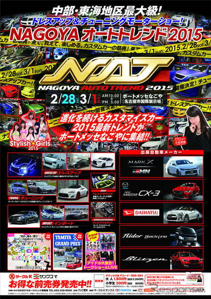中部地区最大級のカスタマイズカーの祭典、「NAGOYAオートトレンド2015」が2月28日と3月1日の2日間、「ポートメッセなごや」で開催される。