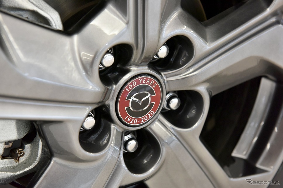 1920年に東洋コルク工業として産声を上げ、2020年に創業100周年を迎えたマツダ。それを記念し、1961年にマツダ初の乗用車として発売された『R360クーペ』をオマージュしたカラーコーディネートに身を包んだ「100周年特別記念車」をマツダの新たなコンパクトクロスオーバー『MX-30』にも設定。エクステリアとインテリアに特別装備を施した。100周年記念車は同社の『マツダ3』や『ロードスター』、『CX-5』など他ラインナップにも設定されている。 24Vのマイルドハイブリッドが組み込まれた2.0リットル「e-SKYACTIV G」搭載のMX-30の100周年記念車は、ボディーカラーにセラミックメタリックとマローンルージュメタリックを組み合わせた2トーンの専用ボディカラーを設定。 東洋コルク工業当時のロゴと現在のブランドシンボルマークを重ね合わせた創立100周年スペシャルロゴが、フロントヘッドレストやホイールキャップ、オーナメント、アドバンストキーなど随所にあしらわれている。シートにはブラックのクロスにレッドの剛性皮革が用いられ、レッドのフロアカーペットやフロアマットも合わせて装備した。 ドライバーサポートとして360°ビュー・モニターやドライバー・モニタリングを装備する他、8 cmセンタースピーカー、サテライトスピーカー、サブウーファーを合わせた12スピーカーシステムのボーズサウンド・システムを搭載している。 MX-30 100周年記念車の価格は2WDモデルが315万7000円、4WDモデル339万3500円で、2021年3月31日まで注文を受け付けているとのこと。