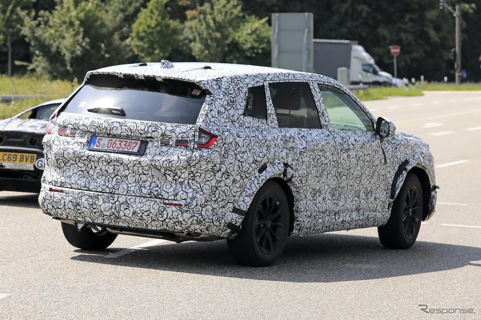 またフラットで長く幅広いフード、目立つリアショルダー、より大きく傾斜したリアウィンドウが見てとれるほか、サイドミラーがAピラーからドアへ移動されているのも見てとれる。さらに後部ではフック型LEDテールライトが初めて露出、スリムでスポーティな印象を与えている。