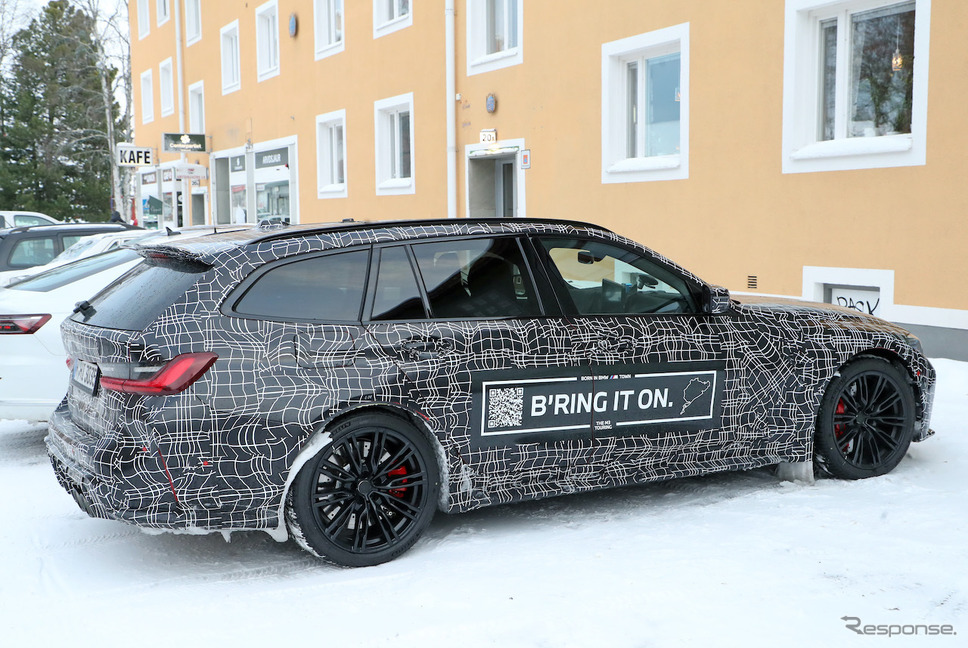 また新たな発見として、「M3コンペティション」のバッジを確認。ツーリングでは、より高性能な「コンペティション」のみ発売されるという以前の噂と一致している。パワートレインは、3.0リットル直列6気筒ツインターボ「S58」エンジンを搭載。M3セダンでは最高出力は480ps、最大トルク550Nmを発揮するが、コンペティションでは最高出力510ps、最大トルク650Nmを発揮、8速オートマチックトランスミッションを介して4輪すべてに動力を供給する。