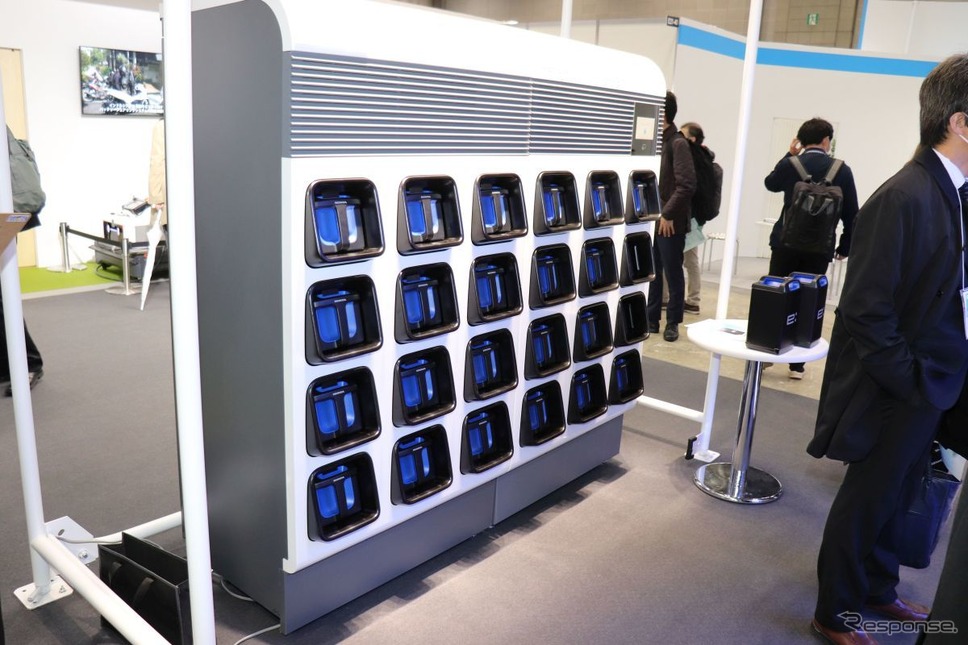「スマートエネルギーWeek春2022 / 水素・燃料電池展2022」で本田技術研究所は、FCモジュール以外に、「ホンダモバイルパワーパック(HMPP)」の各種提案を行っていた。HMPPは、日本郵便の集配バイク(ホンダ『ジャイロ:e』)の交換式バッテリーとして利用されているものだ。交換式バッテリーは、充電のための待機時間をほぼゼロにできるので、同じ台数でも車両の稼働率を上げられる。バイクや小型モビリティなら、バッテリー交換も人力で可能となり、充電ステーションの設備投資を抑えることができる。
