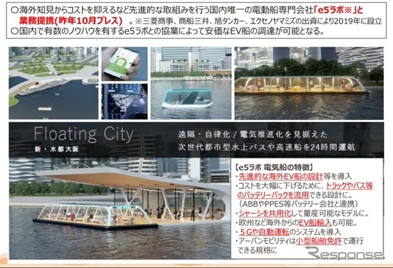 道満:はい。e5ラボ(イーファイブラボ)という電動船の専門会社があります。三菱商事、商船三井、旭タンカー、エクセノヤマミズが作った会社で、電動船の企画や自動航行のシステムを作っているベンチャー企業です。ここと一緒に電気船の普及に取り組んでいこうと考えています。