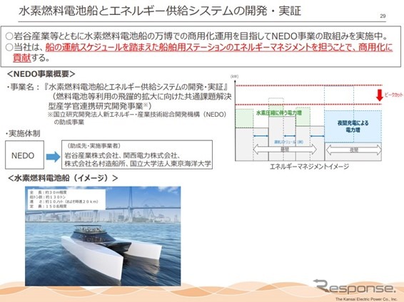 道満:そうですね。もうひとつ、NEDOの補助事業で水素燃料電池船が採択され、これを岩谷産業と共同で行っています。水素燃料電池とバッテリーのハイブリッド船です。水素を圧縮するための電力とバッテリーへの充電の電力をエネルギーマネジメントするシステムの開発と合わせて行なっています。万博の開催時には夢洲への来場客輸送の運航を岩谷産業と検討しています。