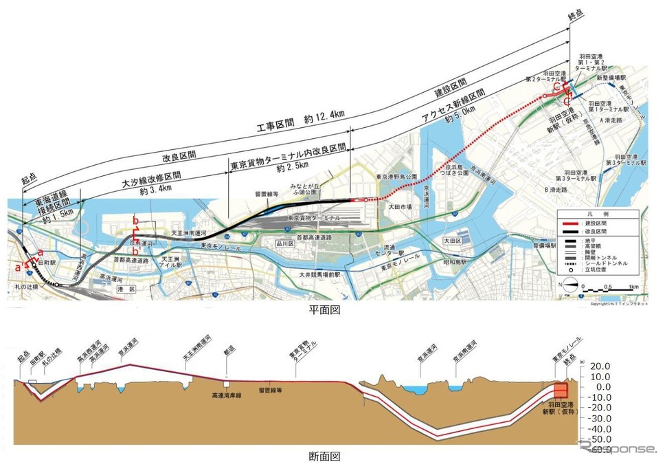 工事費は概算で約2800億円が見込まれており、2031年度の開業を予定している。開業すれば、東京駅~羽田空港間の鉄道アクセスは現行より12分程度短縮した18分程度になるという。