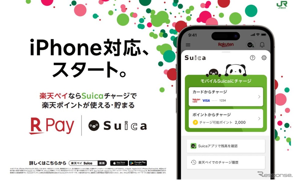 一方、JR東日本のSuicaではモバイルSuicaと楽天ペイとの連携・チャージが6月26日からiPhoneで始まっている。