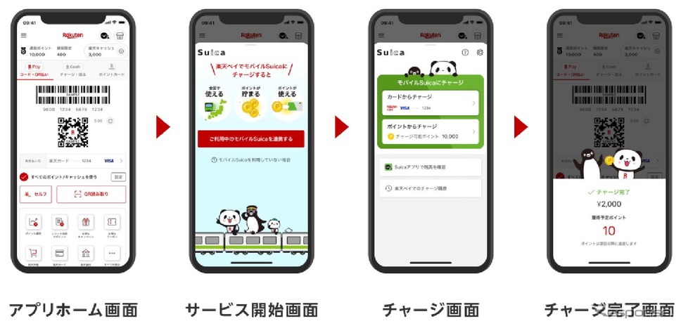 これにより楽天ペイのアプリに登録されている楽天カードや楽天ポイントからのモバイルSuicaへのチャージが可能となっている。