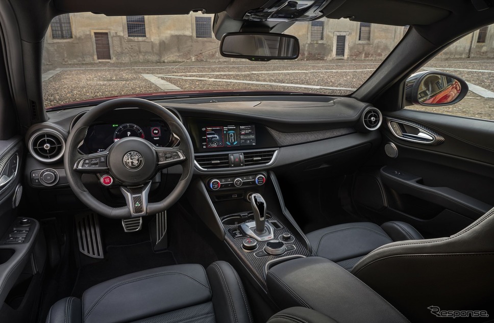 また、シリーズ最強の限定モデル『ジュリアGTA』のノウハウを生かした機械式セルフロッキングディファレンシャルを採用する。特別なチューニングにより、車の挙動とトラクションの向上、トルク伝達の最適化、コーナーでの安定性と俊敏性とスピードの向上を可能にしているという。