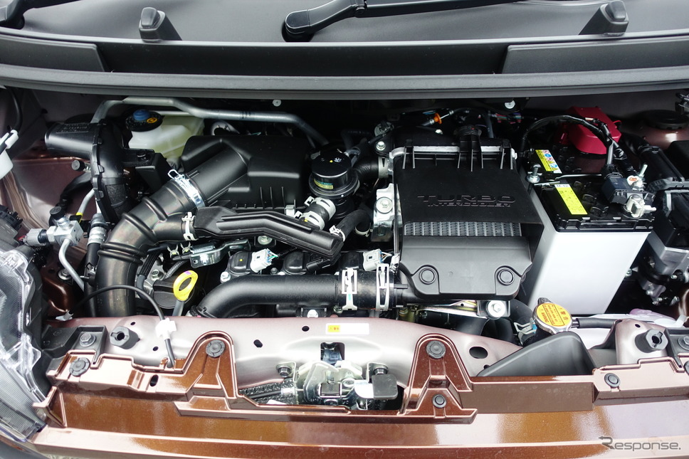 試乗車はNAエンジンを搭載する「X」グレードとターボエンジンを搭載した「RS」グレードの2モデル。いずれも新色となる「グレースブラウンクリスタルマイカ」と呼ばれる濃いブロンズ色(ターボはルーフがグレーの2トーンである)のモデルをチョイス。まずはNAエンジンの方から乗り出してみた。