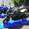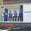 会場でおこなわれたトークショーでは、新型カタナのチーフエンジニア野尻哲治氏とテストライダーの大城光氏が登壇。開発秘話やこだわりなどが紹介される中、次期モデルについて語る一幕も。