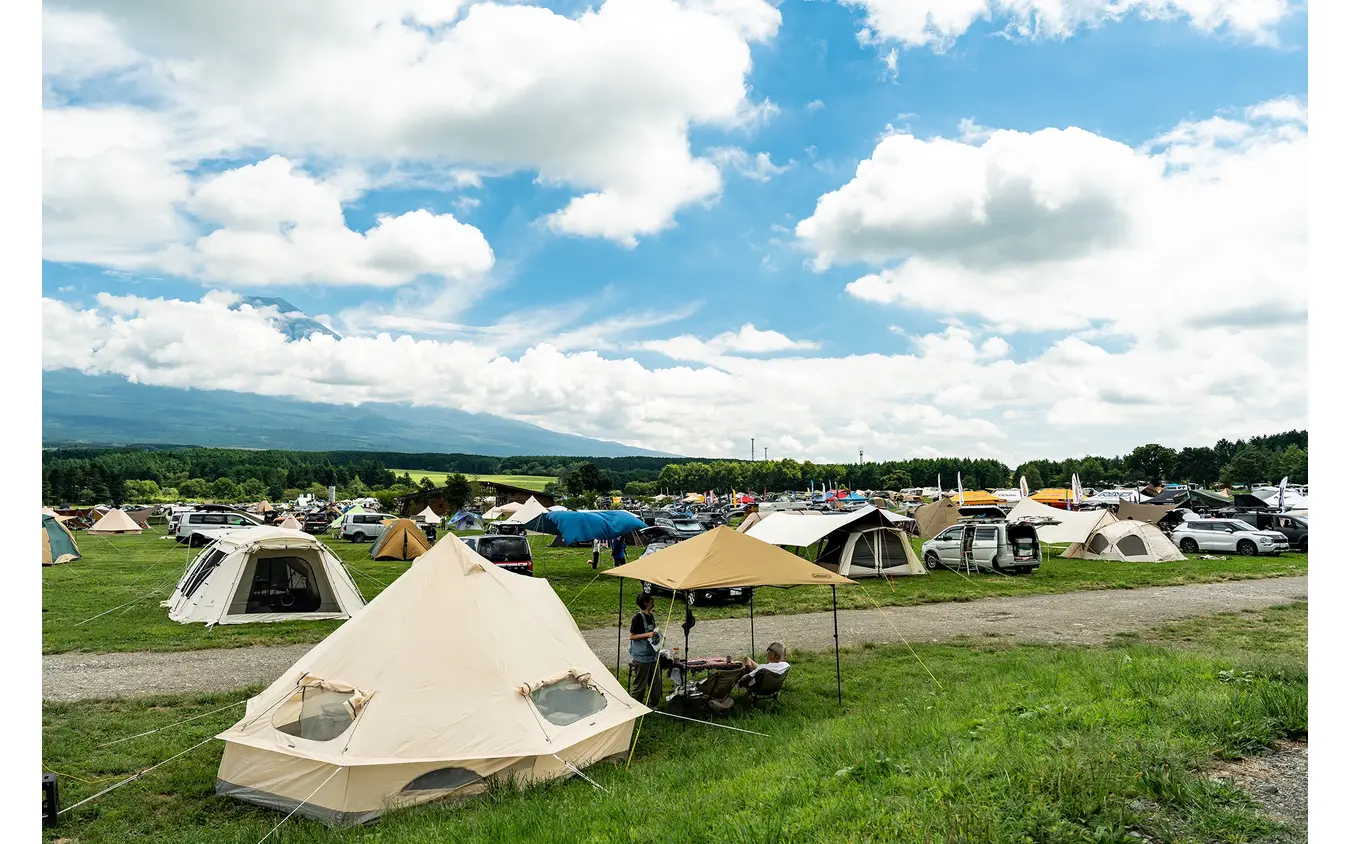 参加者は、テントやトレーラーハウスなどを設置すると、思い思いのスタイルで休日を満喫。都市ではまだまだ酷暑が続いていたが、高原の空気は涼しく、背後にそびえる毛無山からもさわやかな風が吹きおろしてくるふもとっぱらは心地よく、午前中から香ばしい煙を漂わせる焚き火もちらほら目についた。とはいえ、そこはメーカー主催のイベント。カープログラム/サポータープログラム/イベントプログラム/タイムプログラムの4つにカテゴライズされた、豊富なアクティビティが用意された。
