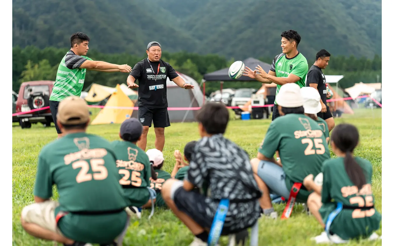 サポータープログラムは、協賛企業がさまざまなイベントを実施。なかでも、リーグワンを戦うラグビーチームの三菱重工相模原ダイナボアーズの選手による親子ラグビー体験会では、子どもはイキイキと、大人は体力の限界と闘いながら、参加者たちはあまり機会のないラグビー体験を心ゆくまで楽しんでいた。