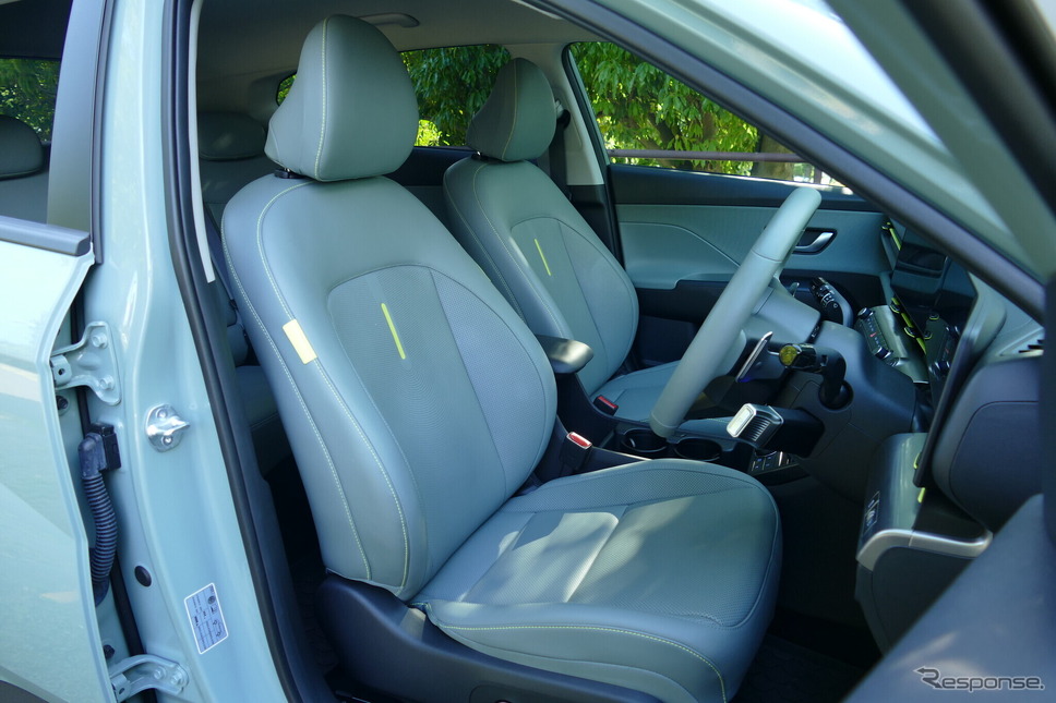 実車はなかなかの存在感。試乗中も、路上で偶然標準車のコナに乗ったユーザーとすれ違ったが、目敏く気づき、熱い視線をコチラに向けているのがわかった。現ユーザーなだけに、標準車では日本未設定の“ミラージュグリーン”のボディ色が目に止まったのだろう。