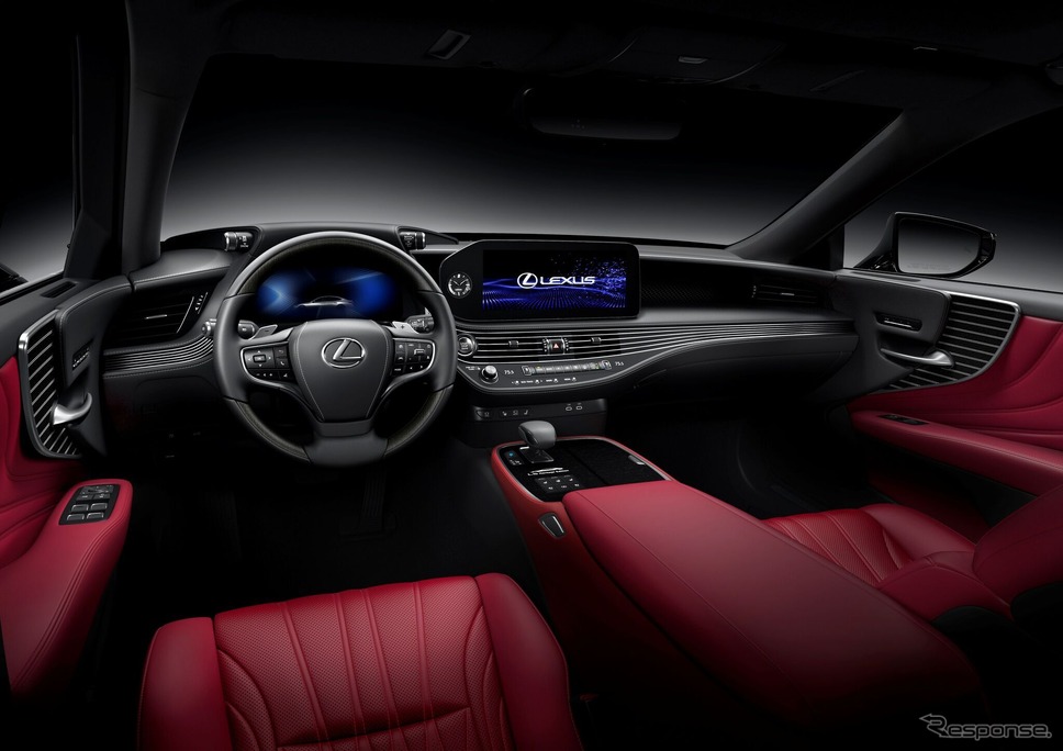内装では、LS初となるリオハレッド内装を採用し、乗員を豊かで鮮やかなラグジュアリー空間で包み込む。センターコンソールには、エッチング加工されたレクサス LSヘリテージエディションエンブレムが配置され、LSのエレガントなシルエットがデザインされている。このデザインはヘッドレストにも刺繍として施され、洗練された独占性と、このモデルの輝かしい系譜への控えめな敬意を表現している。