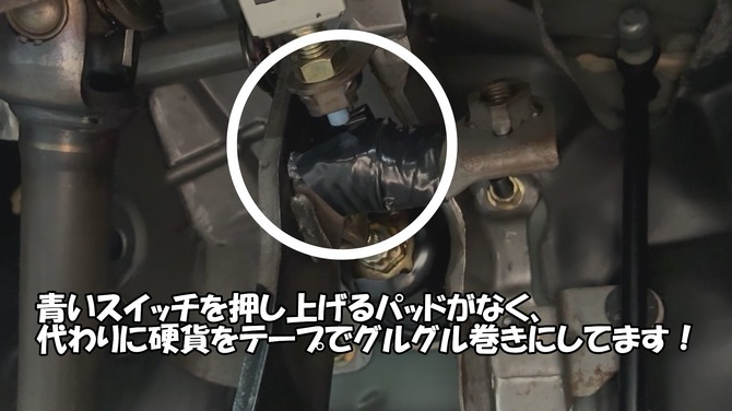 応急処置として急遽用意したのが、ブラックテープと5円玉と1円玉です。この5円玉と1円玉を重ねて、ブラックテープでぐるぐる巻きにしてパッドの代わりにしたというわけです。