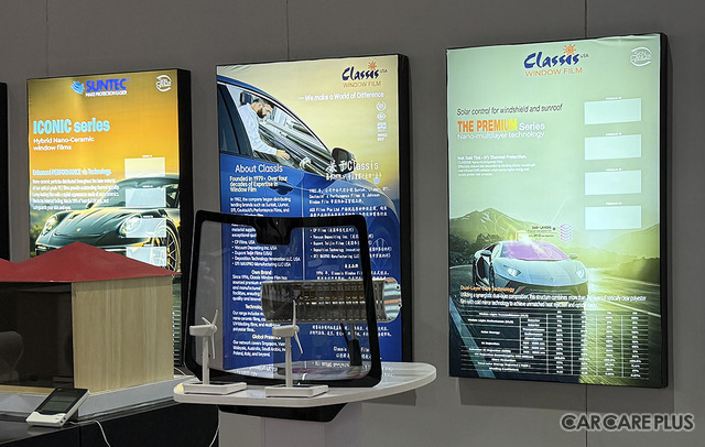 このほか、カーディテイリング関連も出展。プロテクションフィルムやウインドウフィルムなどもあり、一定の需要があることが伺えた。