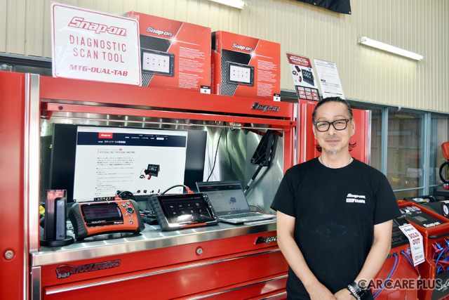 そんな同社がスキャンツールに求めるのは、単に故障コードを読み取れることだけではないという。「結局、何かあった時に助けてくれるかどうか。他社のツールは機能が良くても、いざ困った時のアフターサポートが不十分な場合があります。その点、スナップオンは加盟店さんを始めとしたサポート体制が本当にしっかりしている。うちも“宮脇さん”がこまめに訪問してくれますし、きちんと提案してくれるので、納得した上で製品を購入できる。これが、スナップオン製品を安心して使い続けられる一番大きなポイントです」と高原社長は話す。