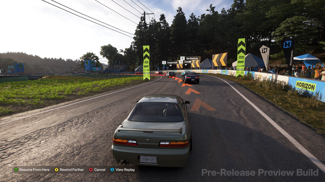 そして『Forza Horizon』といえばリワインド機能であり、うっかりコーナーを曲がり切れずにコースアウトしてしまっても、ボタンひとつで時間を巻き戻して好きなタイミングからやり直せます。