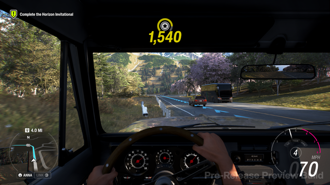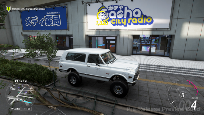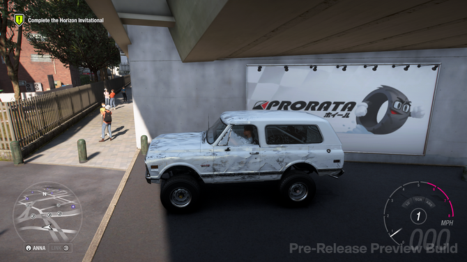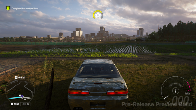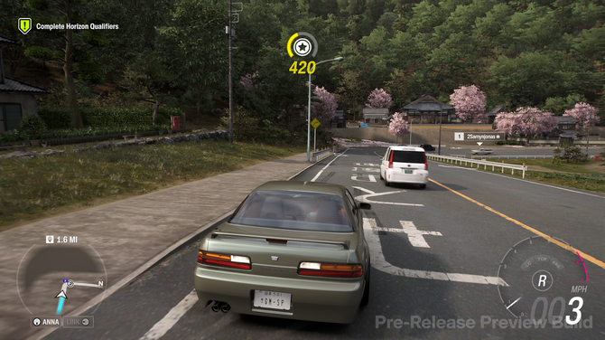 まずはこんな風景……と景色に入るまえに、筆者が一番驚いたのが、「プレイヤーのニックネーム」についてです。『Forza Horizon』シリーズでは、音声案内でプレイヤーを呼ぶための“名前”があらかじめプリセットで用意されています。