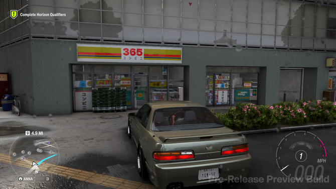 それでは、風景を見ていきましょう。「日本といえばコンビニ」みたいな認知は日本内外ともに結構強いもので、『Forza Horizon 6』で見られるのは「365」というチェーン店。