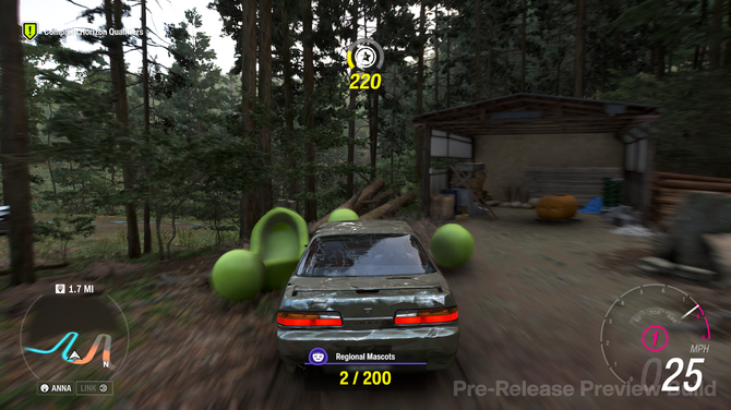 スコアのために、可愛いキャラクターを無慈悲になぎ倒して壊しましょう。そう、『Forza Horizon』シリーズはリアルな風景を“破壊”することも楽しみのひとつなのです。