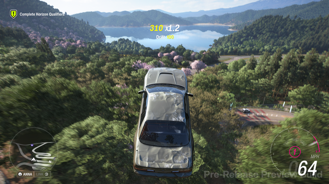 そして、『Forza Horizon 6』には「いろは坂」をモチーフにしたヘアピンカーブがいくつか収録されていますが、そういったヘアピンカーブを無視し、突っ切って空を飛ぶ自由もプレイヤーにはあります。