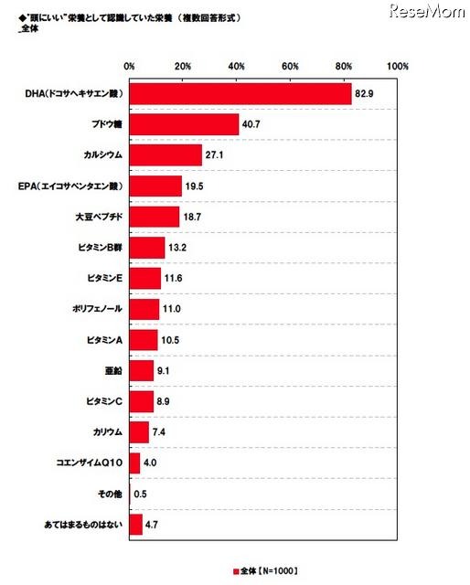 "頭にいい”栄養として認識していた栄養(複数回答形式)全体