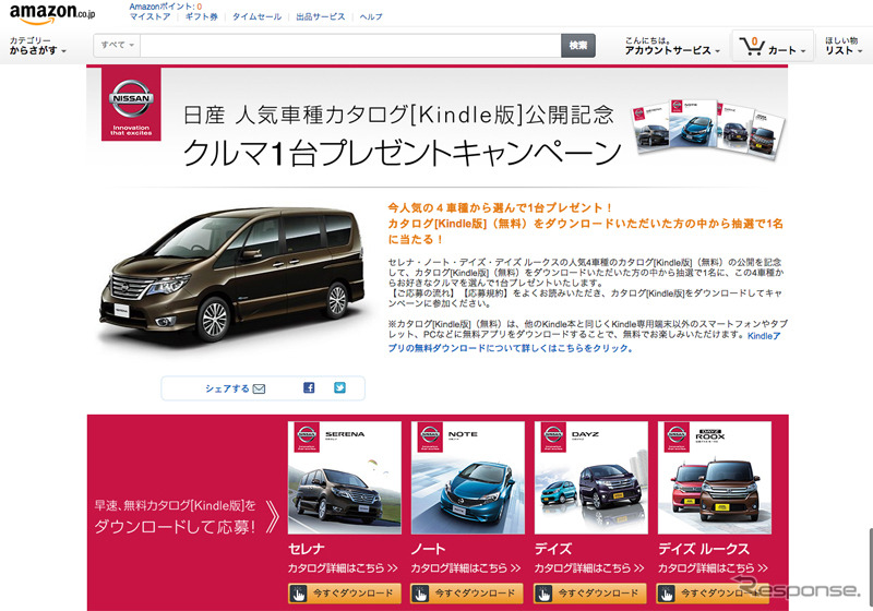 日産、カタログデータをKindleストアで無料提供開始…セレナ、デイズなど4モデル 1枚目の写真・画像