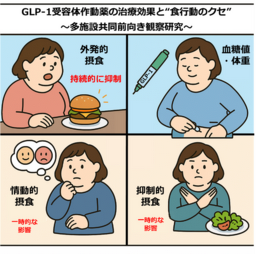 ・治療開始前に質問紙を用いて“食行動のクセ”を把握することで、GLP-1受容体作動薬の効果を予測し、より効果的な治療選択につなげられる可能性が示唆されました。