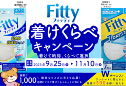 玉川衛材株式会社(本社:東京都千代田区、代表取締役社長:玉川 雅之)は幅広いラインアップを取り揃えているマスクブランドの「Fitty(フィッティ)」において、2025年9月25日(木)~11月10日(月)の期間中、クイズに答えて、正解した方の中から抽選で、1,000名様にフィッティマスク着けくらべセットが当たる「フィッティ着けくらべキャンペーン」を実施いたします。