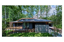 また化粧梁など構造材をあらわし、内装にも住友林業オリジナル部材「PRIME WOOD」の床材をはじめ、木質部材をふんだんに取り入れることで木質感あふれる邸宅に仕上げています。別荘ならではの設備としてサウナルームや屋外の豊かな自然と建物内部を緩やかにつなげる広いウッドデッキを設置し、都会の喧騒から離れた非日常のプライベート空間を提供します。
