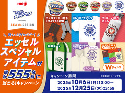 「明治 エッセル スーパーカップ 紅茶クッキー」の発売を記念して、BEAMS DESIGN監修のエッセルスペシャルアイテムが総計555名様に当たるキャンペーンを実施します。