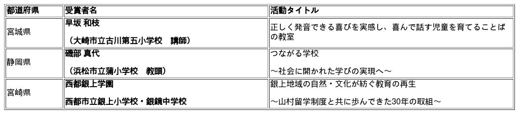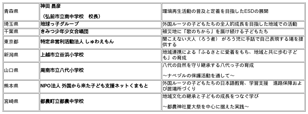 博報賞は、子どもたちの主体性を引き出し、すばらしい成果をあげている先駆性・独自性のある教育実践で、波及効果が期待できる草の根的な活動と貢献に贈られます。さらに、博報賞受賞者の中で特にすぐれた実践がある場合には、「文部科学大臣賞」も併せて授与されます。