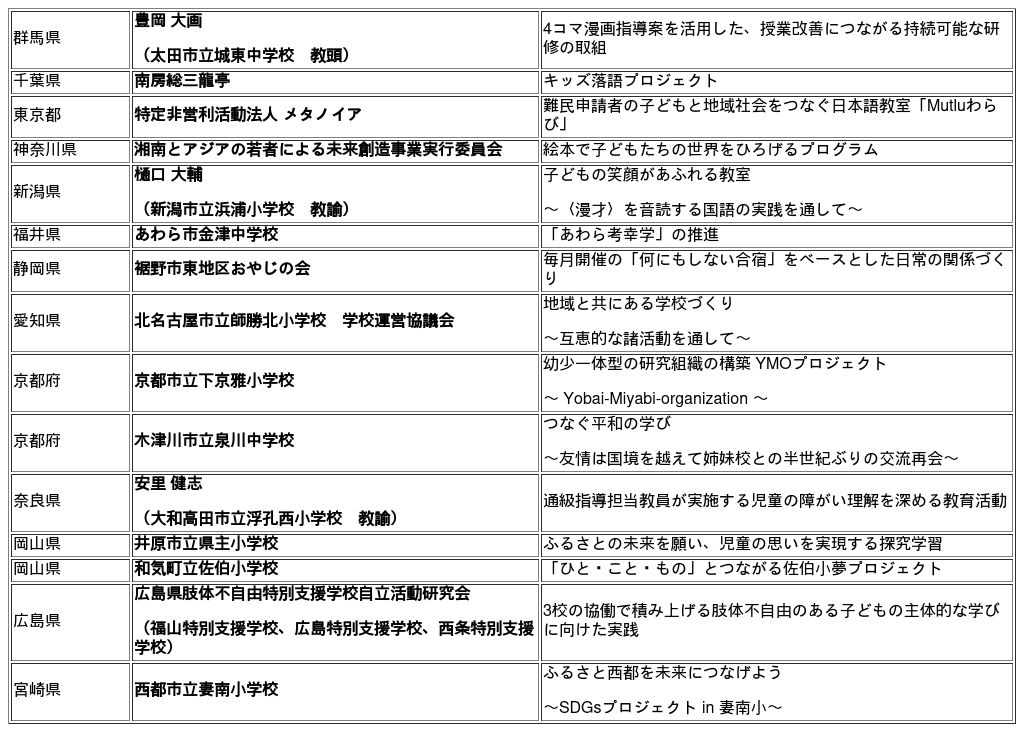 博報賞12件(うち3件は、文部科学大臣賞も併せて受賞)、功労賞8件、奨励賞15件