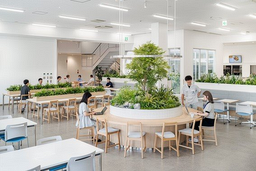 NOK福島事業場では、「つどう・つながる・かえていく」をコンセプトに、2025年8月、社員食堂をリニューアルしました。社員食堂を大切な交流の場として、食事の場にとどまらず、簡単な打ち合わせやPC業務、歓談にも対応できるよう、生まれ変わりました。社員同士の交流を促し、自由なコミュニケーションから新しい発想が生まれる環境作りを目指しています。