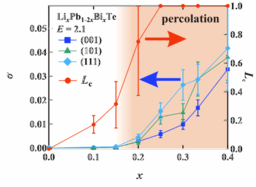 2.イオン濃度が約20%を超えると導電経路が結晶全体に広がることを確認し、この臨界値がパーコレーション理論の臨界点と一致することを示しました。