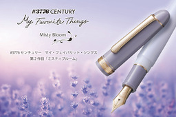 プラチナ万年筆株式会社(本社: 東京 社長: 中田俊也)は、インク鮮度を保ち続けるスリップシール機構を搭載した「#3776 センチュリー」万年筆の特別限定モデルとして「マイ・フェイバリット・シングス」を発売します。身近にある「私のお気に入り」でボディを彩ることをコンセプトに、定番色には無い限定モデルならではの配色で展開を図るシリーズで、第2作目として「ミスティブルーム」を発売します。朝もやの向こうにぼんやりと浮かび上がるのは、一面に咲き広がる紫色の花畑。花々は朝露をまといながら、優しく揺れています。そこには、時間の流れさえも緩やかになったような、空気が満ちていました。花畑を包む静けさとやわらかな光。そんな日常の中にひそむ特別な瞬間が「私のお気に入り」です。今回の「M y Favorite Things」では、そんなささやかなときめきのシーンを、万年筆で表現しており、キャップとグリップには、どこまでも広がる花々の紫を採用し、ボディには、朝もやを思わせるやわらかな乳白色をあしらいました。