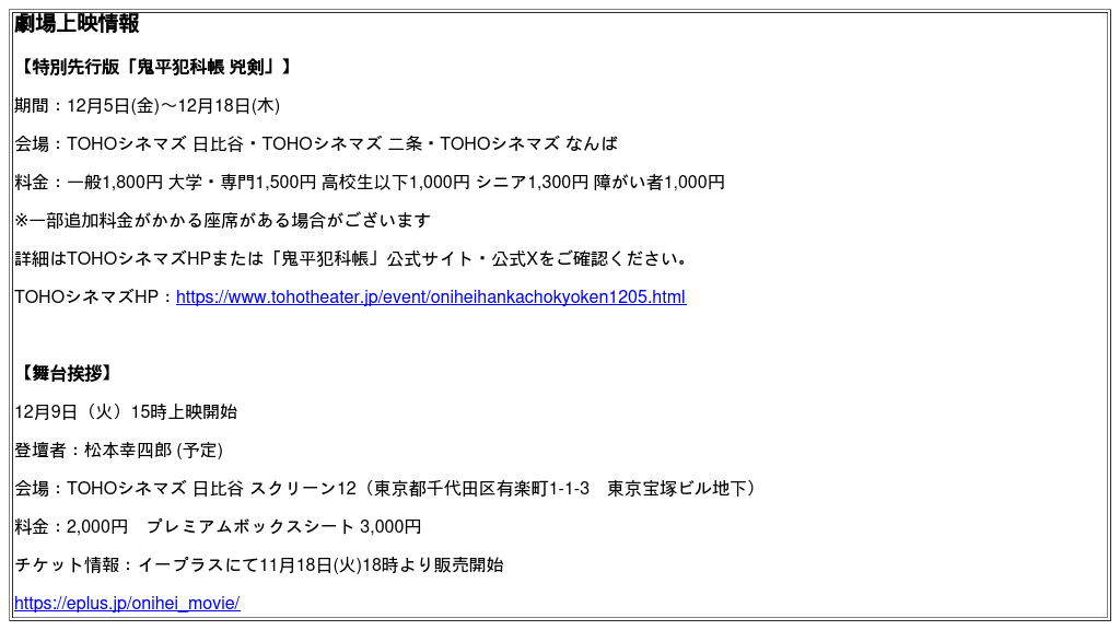 ◆時代劇専門チャンネル 松本幸四郎主演「鬼平犯科帳 兇剣」特設サイト