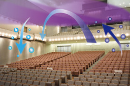 ■ コンサートホール規模の大空間において、浮遊ウイルスの高速殺菌と安全性の両立を実現