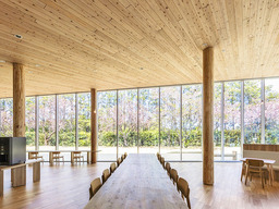 「河村電器産業株式会社つくば工場食堂棟」は、河村電器産業が1990年に工場を創業して以来、工場を守ってきた防風林の隣接地に、当社の設計・施工により2025年4月に竣工しました。「FOREST DINING」をコンセプトに、従業員がリラックスし、活力を養える空間とするため、内外装に多くの木を使用。構造上の制約を最大限取り除き、開放的な大空間を実現させたことで、視線が広がり森林に溶け込むような空間を創出しました。