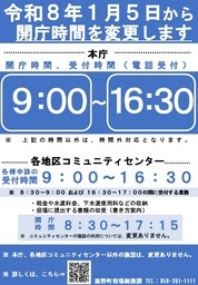 ※役場本庁および各地区コミュニティセンター以外の施設については、開庁・受付時間の変更はありません。