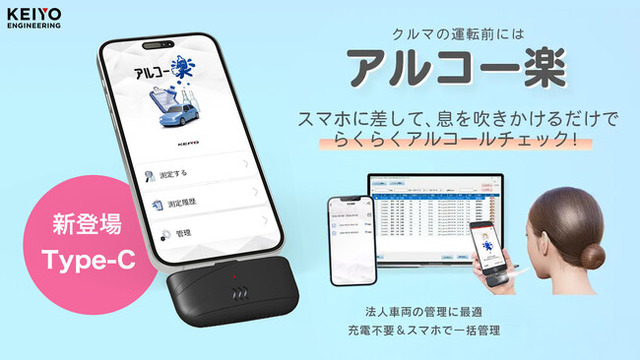 株式会社慶洋エンジニアリング(東京都港区新橋)は2025年8月20日(水)より、スマートフォンに挿して息を吹きかけてアルコールチェックができる「AN-S126iC」を販売開始いたします。「AN-S126iC」はiPhone15以降のType-C端子に対応しています。