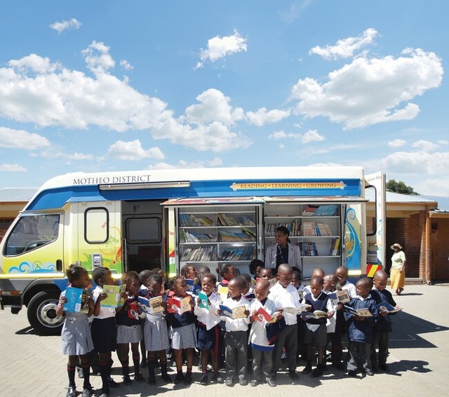 日本から寄贈された中古の移動図書館車と南アフリカの子どもたち
