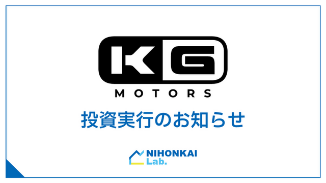 株式会社日本海ラボ(本社:富山市、代表取締役社長:新田洋太朗、以下、日本海ラボ)は、KGモーターズ株式会社(本社:広島県東広島市、代表取締役:楠一成、以下、KGモーターズ)に出資しましたので、お知らせいたします。