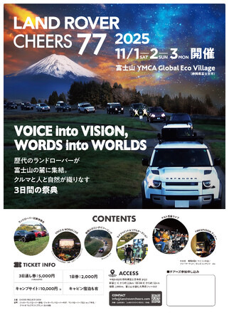 CHEERS PROJECT CREW(代表:篠田 岳/静岡県富士宮市)は、2025年11月1日(土)~3日(月・祝)の3連休に、日本最大級のランドローバーファンイベント「LAND ROVER CHEERS 77」を開催いたします。
