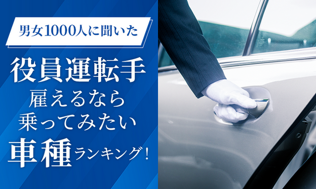 ということで今回は株式会社トランスアクトと共同で、全国の男女1000名を対象に「役員運転手を雇えるなら乗ってみたい車種」についてのアンケートをおこないました。